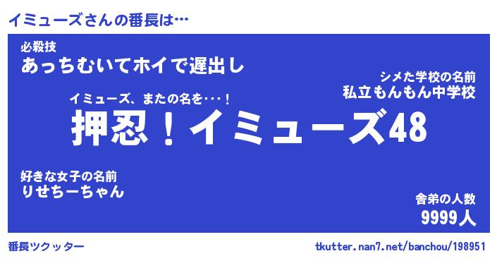 | ヒーロー風カッコイイあだ名 | 『スーパーイミューズ』『炎刃騎士イミ』 |