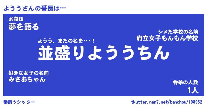 | 男性向けラノベタイトル風あだ名 | 『よううの憂鬱』 |