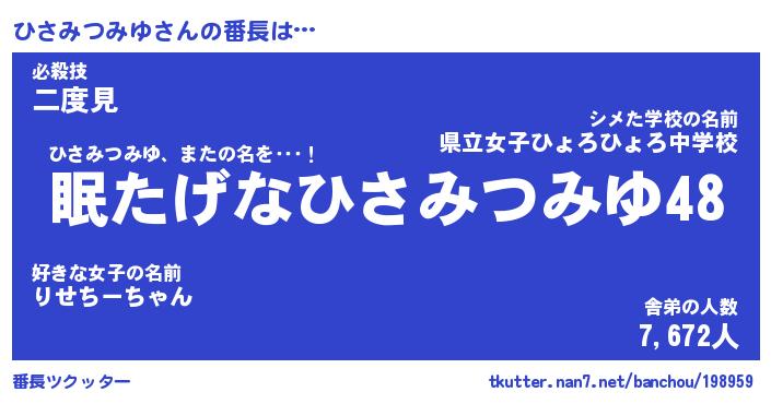 | 男性向けラノベタイトル風あだ名 | 『ヒサミツミユアートオンライン』 |