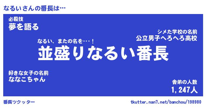 | 意味不明あだ名 | 『ペロリンなるい』『なるいフォーエバー』 |