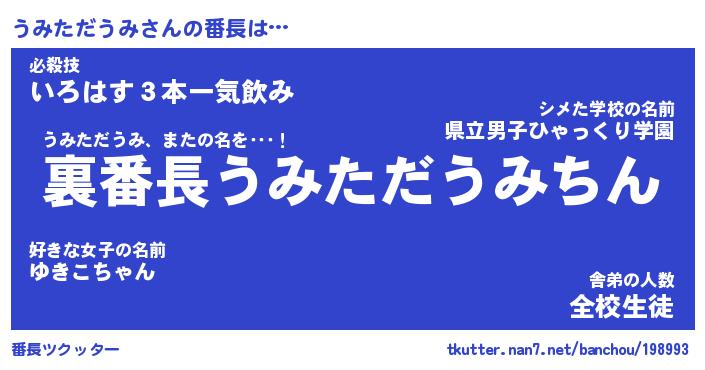 | ヒーロー風カッコイイあだ名 | 『スーパーウミタダウミ』『暗黒騎士ウミ』 |