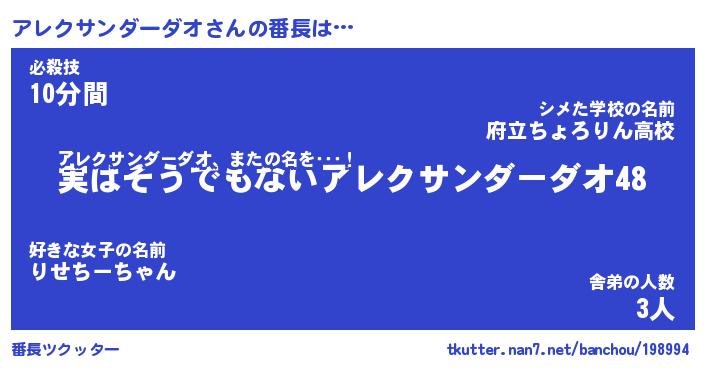 | 意味不明あだ名 | 『ペロリンアレクサンダーダオ』 |
