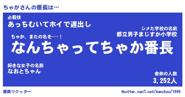 | 伝説のあだ名 | 『伝説のスナイパーちゃか』 |