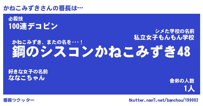 | 伝説のあだ名 | 『封印されしスナイパーかねこみずき』 |