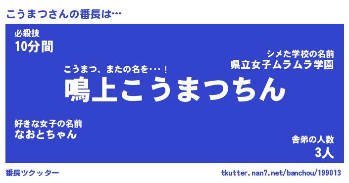 | 意味不明あだ名 | 『ペロリンこうまつ』『永久保存こうまつ』 |