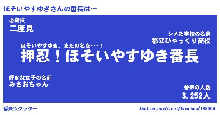 | 伝説のあだ名 | 『封印されしスナイパーほそいやすゆき』 |