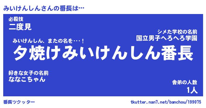 | 肩書あだ名 | 『みいけんしん店長』『みいけんしん担任』 |