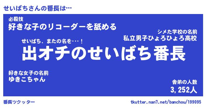 | 意味不明あだ名 | 『ペロリンせいばち』『永久保存せいばち』 |