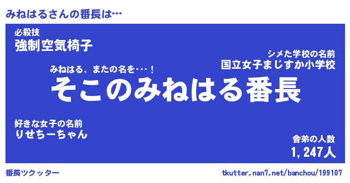 | 2回繰り返すあだ名 | 『みねみね』『みみねね』『にたにた』 |