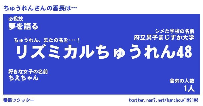 | ファンタジー風あだ名 | 『チュフェル』『エターナルチュウレンー』 |