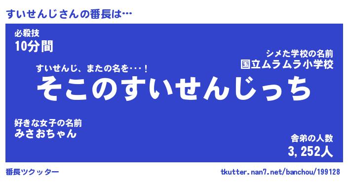 | ピコ太郎風あだ名 | 『スコ二郎』『ピス太郎』『スイ次郎』 |