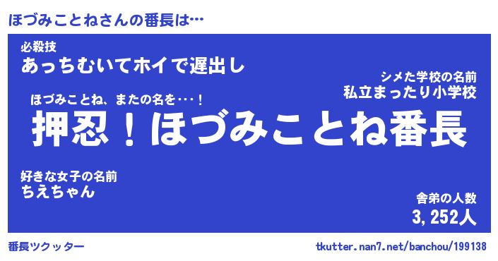 | 2回繰り返すあだ名 | 『ほづほづ』『ほほづづ』『ねばねば』 |