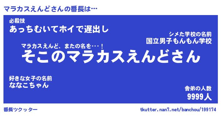 | ピコ太郎風あだ名 | 『マコ二郎』『ピマ八郎』『マラ八郎』 |