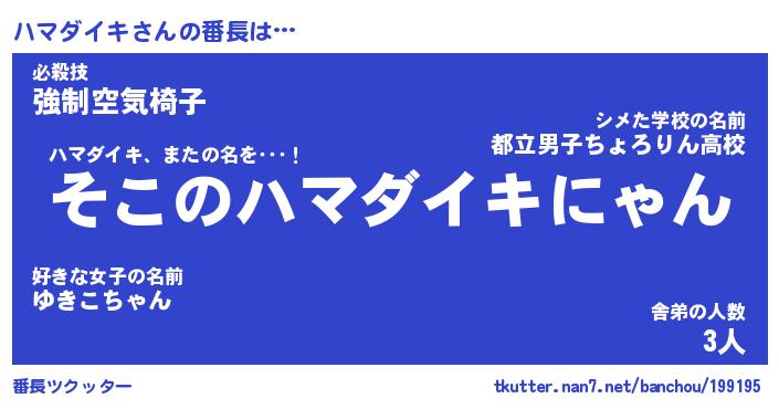 | ヒーロー風カッコイイあだ名 | 『スーパーハマダイキ』『暗黒騎士ハマ』 |