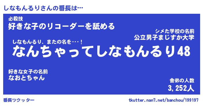 | 伝説のあだ名 | 『伝説のスナイパーしなもんるり』 |