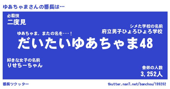 | ポケモン風あだ名 | 『ユアチュウ』『ユアチダネ』 |
