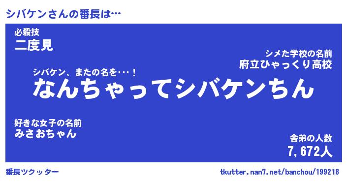 | 意味不明あだ名 | 『ペロリンシバケン』『永久保存シバケン』 |