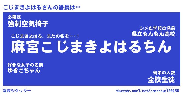 | 伝説のあだ名 | 『不死鳥の竜騎士こじまきよはる』 |