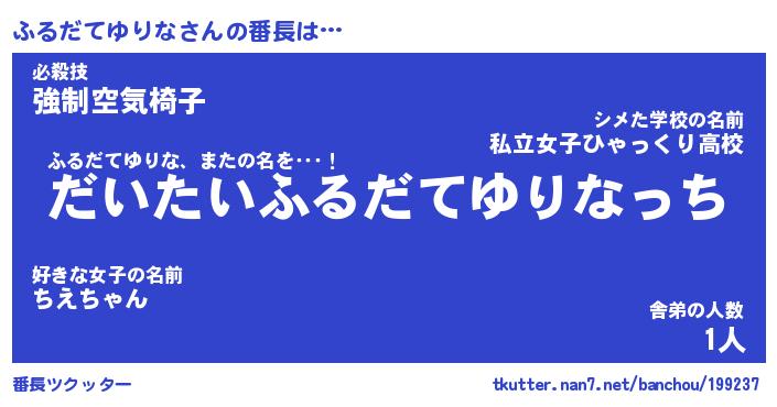 | 伝説のあだ名 | 『不死鳥のスナイパーふるだてゆりな』 |