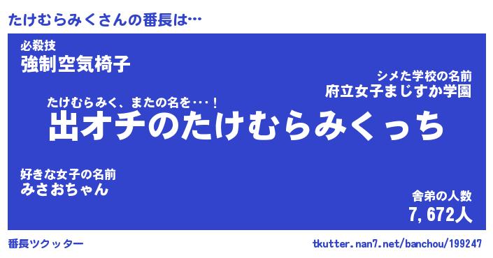 | 肩書あだ名 | 『たけむらみく店長』『たけむらみく塾長』 |