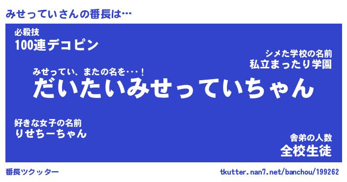 | 恥ずかしいあだ名 | 『プリティーみせってい』『みせっちょ』 |