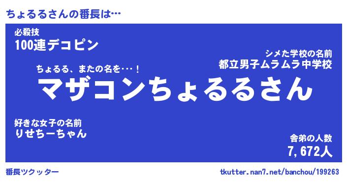 | 意味不明あだ名 | 『ペロリンちょるる』『永久保存ちょるる』 |