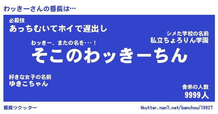 | 意味不明あだ名 | 『ペロリンわッきー』『永久保存わッきー』 |