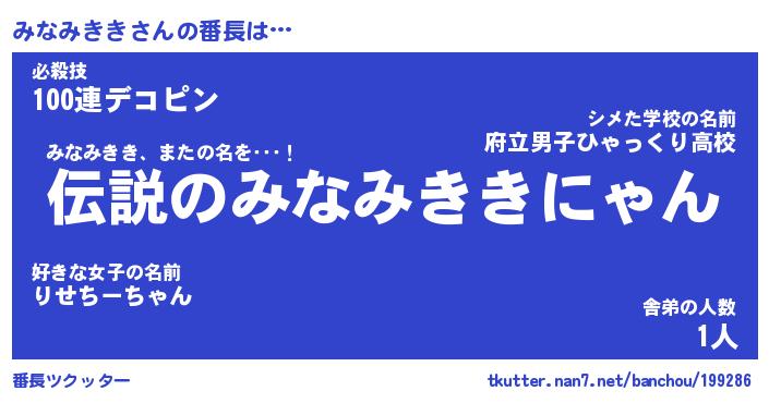| ヘコむあだ名 | 『みなにー』『つくし』『みな太郎』 |