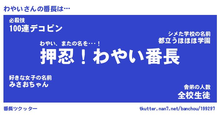 | ヒーロー風カッコイイあだ名 | 『スーパーワヤイ』『ウルトラわやいマン』 |