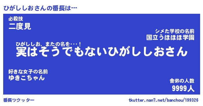 | ファンタジー風あだ名 | 『ヒガフェル』『エターナルヒガシシオー』 |