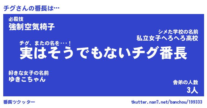 | 意味不明あだ名 | 『ペロリンチグ』『チグフォーエバー』 |