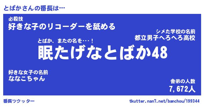 | 意味不明あだ名 | 『ペロリンとばか』『とばかフォーエバー』 |