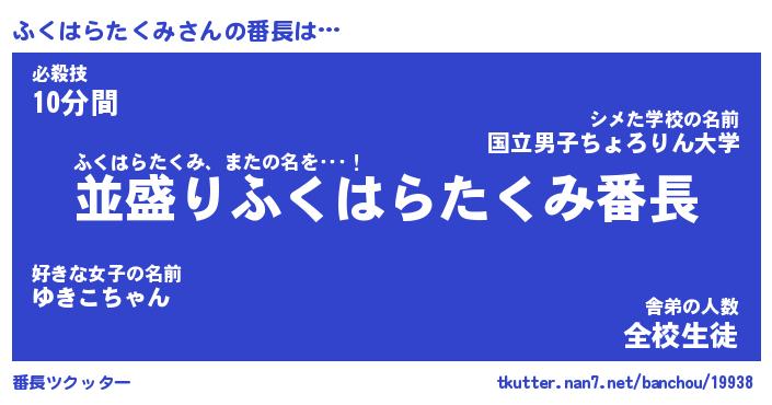 | ヒーロー風カッコイイあだ名 | 『スーパーフクハラタクミ』 |