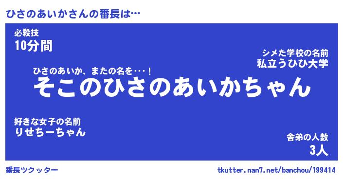 | ピコ太郎風あだ名 | 『ヒコ太郎』『ピヒ六郎』『ヒサ四郎』 |