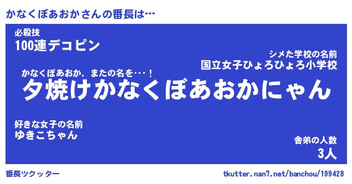 | 2回繰り返すあだ名 | 『かなかな』『かかなな』『おたおた』 |