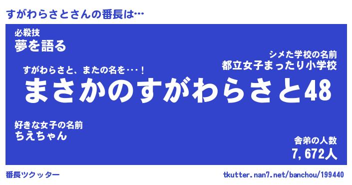 | ポケモン風あだ名 | 『スガチュウ』『スガワダネ』 |