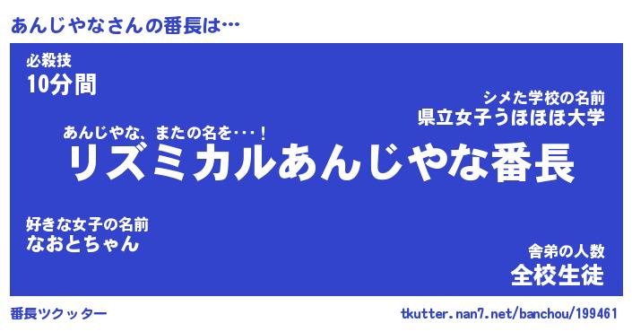 | 肩書あだ名 | 『あんじやな店長』『あんじやな大統領』 |