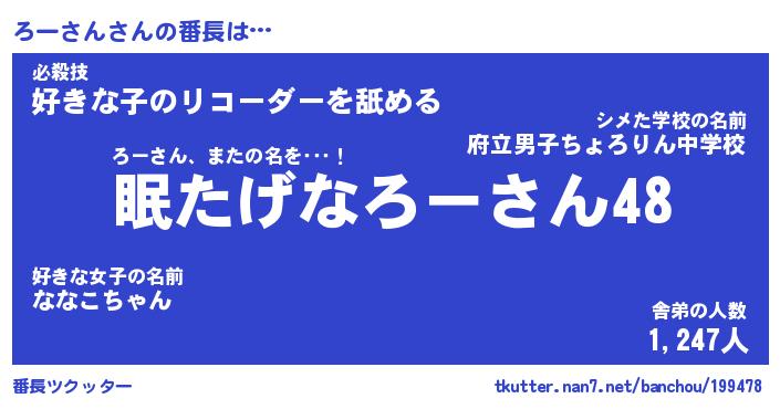 | 伝説のあだ名 | 『封印されしスナイパーろーさん』 |
