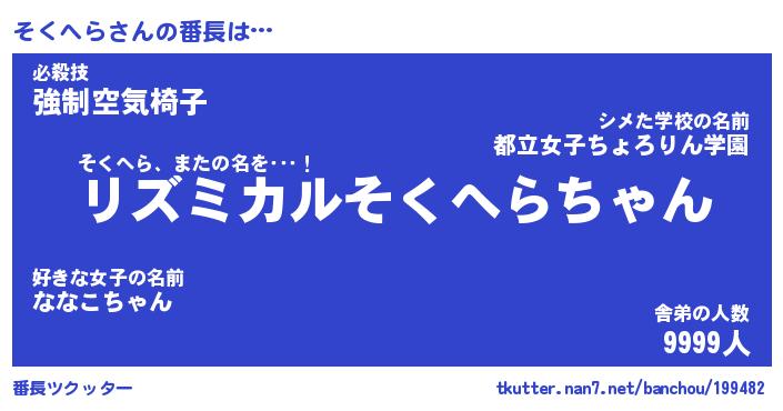 | ヘコむあだ名 | 『そくにー』『つくし』『そくお』 |