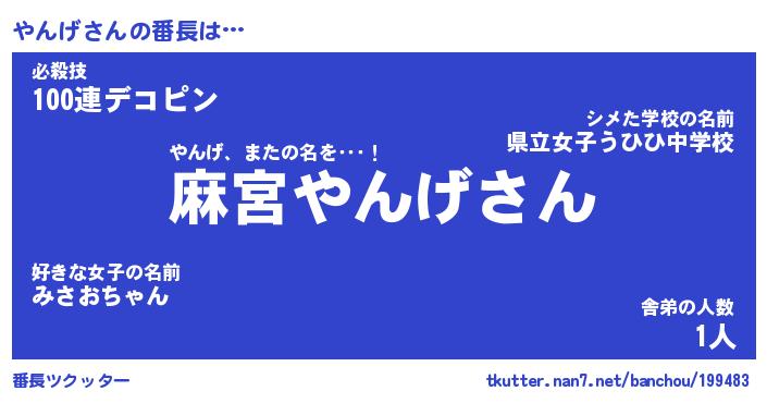 | 意味不明あだ名 | 『ペロリンやんげ』『やんげフォーエバー』 |