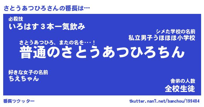 | 肩書あだ名 | 『さとうあつひろ御曹司』 |