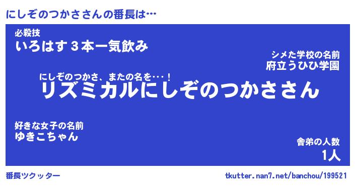 | 男性向けラノベタイトル風あだ名 | 『にしぞのつかさの憂鬱』 |