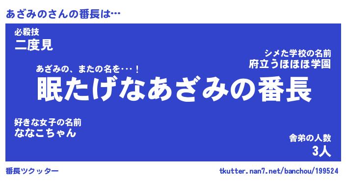 | 2回繰り返すあだ名 | 『あざあざ』『ああざざ』『おらおら』 |