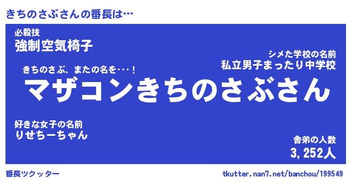 | ファンタジー風あだ名 | 『キチフェル』『エターナルキチノサブー』 |
