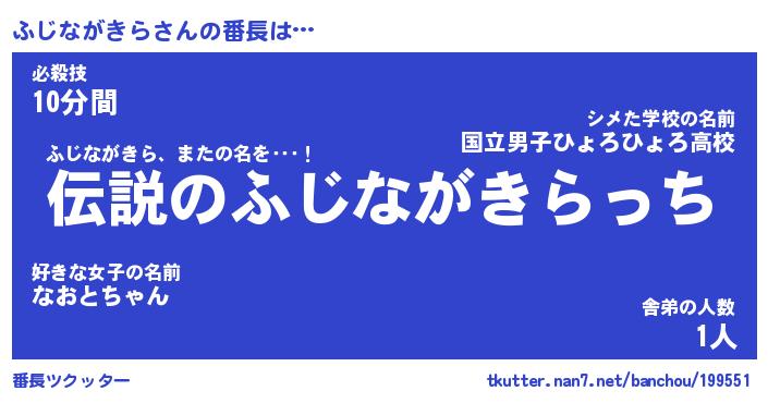 | 伝説のあだ名 | 『伝説の竜騎士ふじながきら』 |