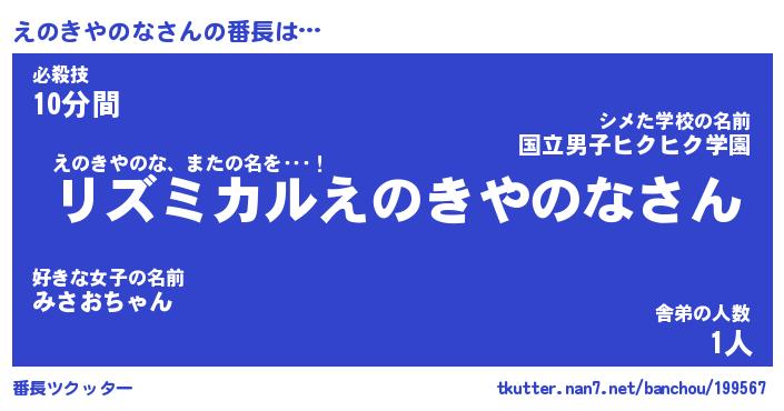 | 男性向けラノベタイトル風あだ名 | 『えのきやのなの憂鬱』 |