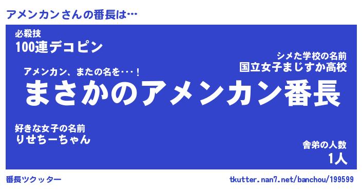 | 男性向けラノベタイトル風あだ名 | 『アメンカンの憂鬱』 |