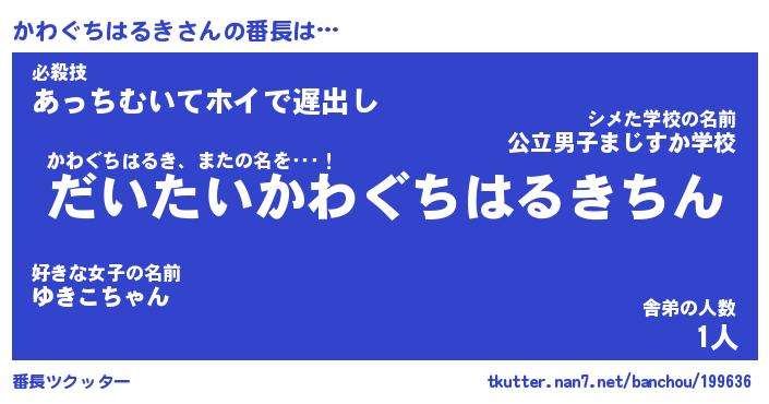 | 恥ずかしいあだ名 | 『プリティーかわぐちはるき』『かわちん』 |