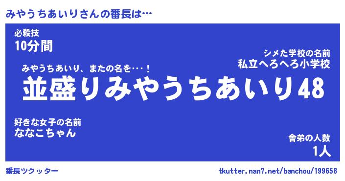 | ヒーロー風カッコイイあだ名 | 『スーパーミヤウチアイリ』 |