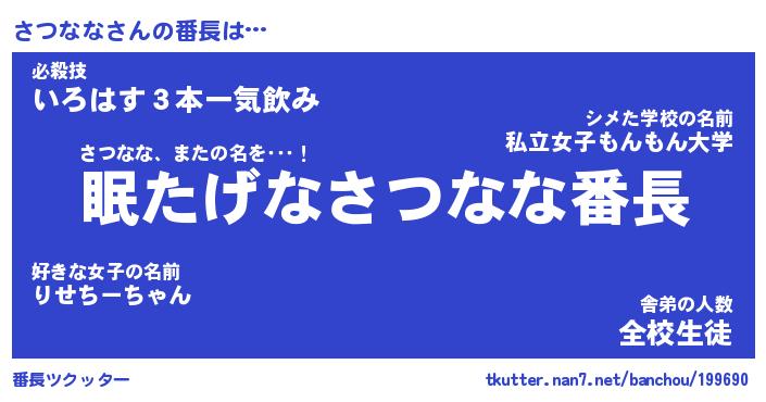 | ファンタジー風あだ名 | 『サツフェル』『エターナルサツナナー』 |